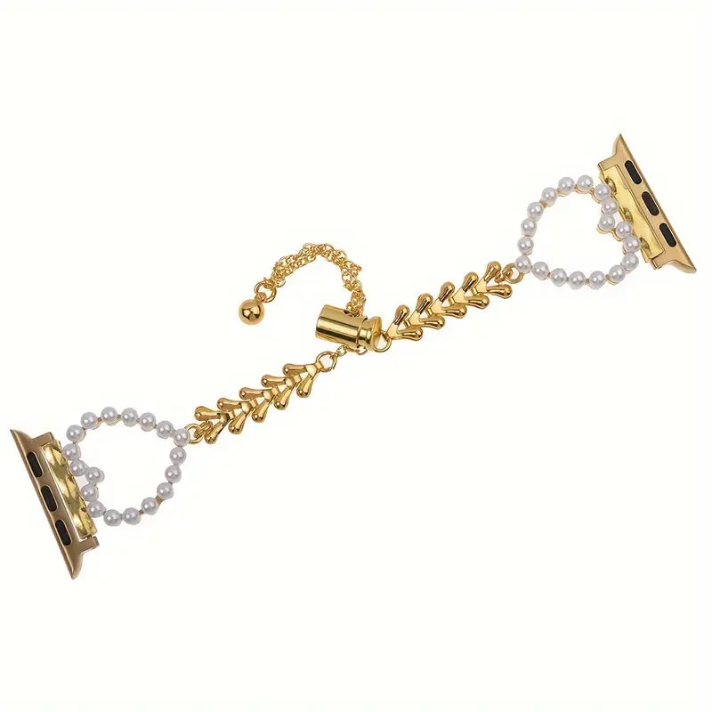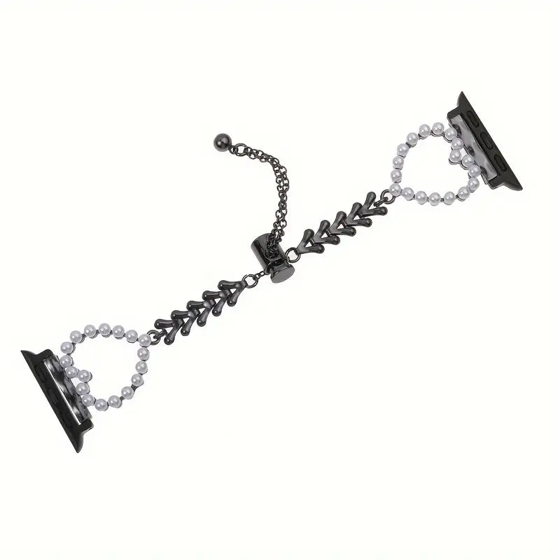 Correa para smart watch ajustable tipo brazalete con perla de corazones, disponible para Apple Watch o similares.