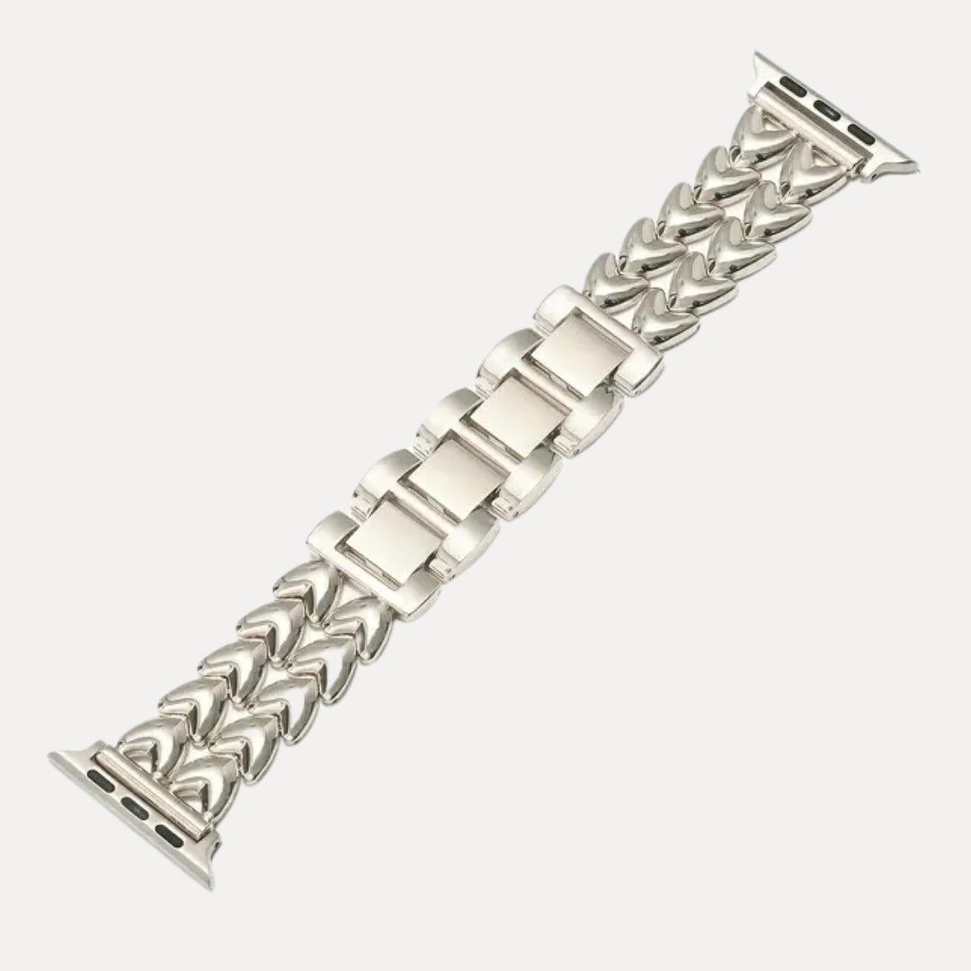 Correa para smart watch ajustable de acero inoxidable plateada de corazones, disponible para Apple Watch o similares.